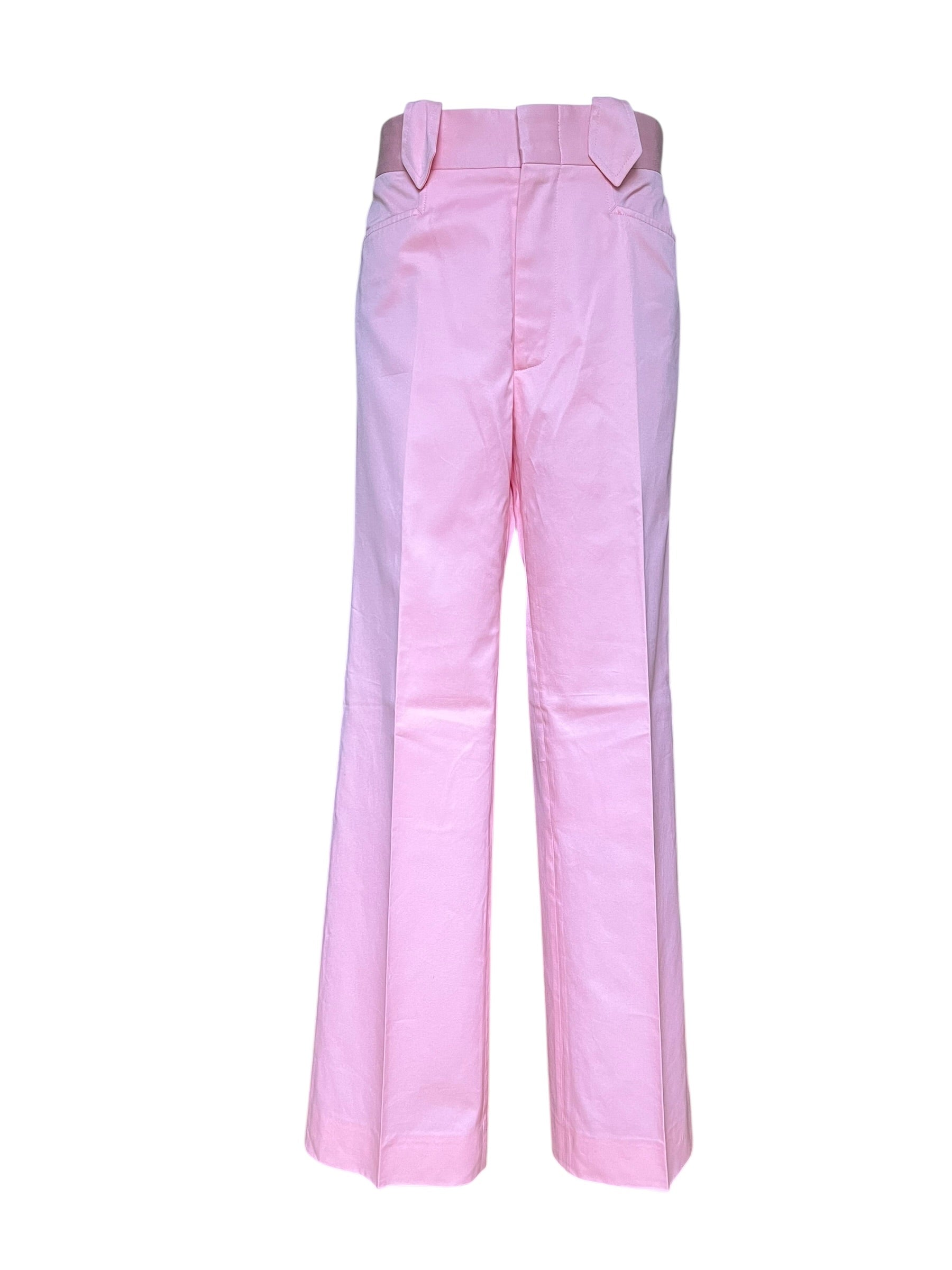 Gucci by Tom Ford high-waisted cotton trousers in soft pastel pink. Designed with a clean, straight-leg silhouette, they reflect the sharp minimalism and refined sensuality of the Tom Ford era. A timeless statement piece that combines feminine color with effortless, tailored elegance